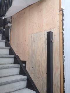 耐震診断の結果強度が不足していたので機能していないはき出しの窓をつぶし、筋交い、金物、合板で補強しました。