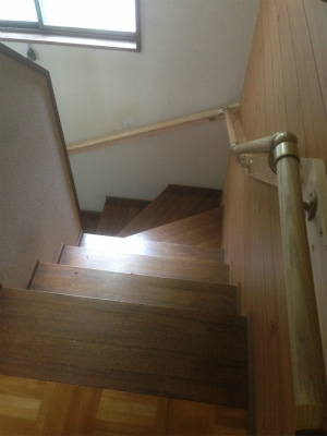 外部段差部分の手すりと、内部階段手すりを取り付けました。